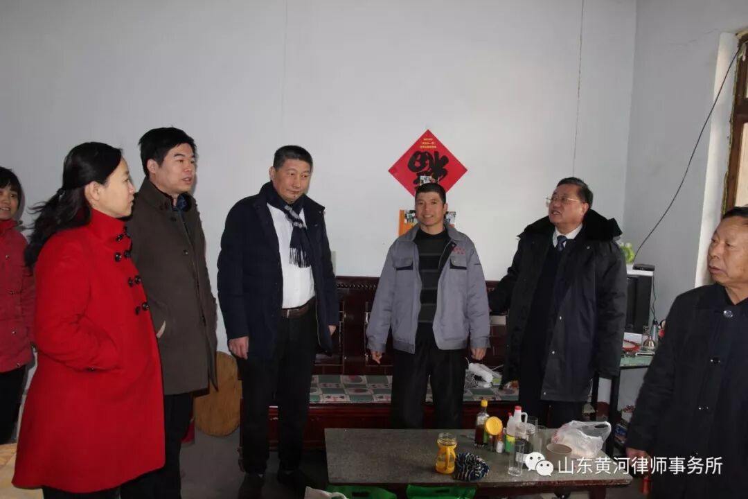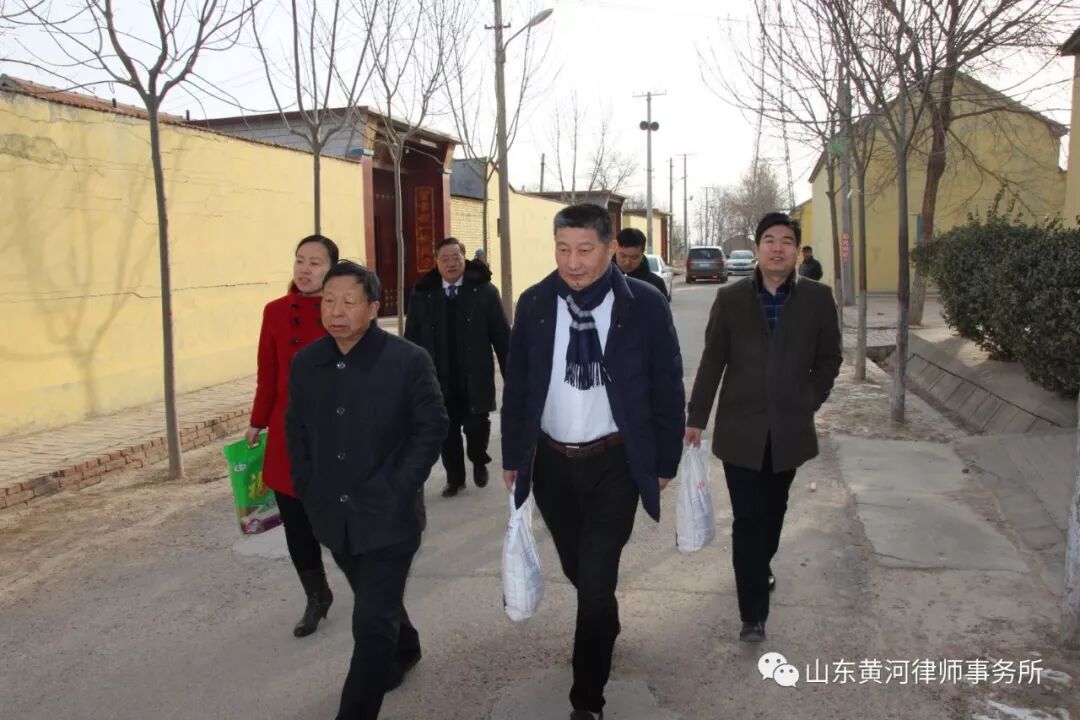 2018年2月10日上午,值新春佳节到来之际, 为让困难群众过一个温暖的新春佳节,山东黄河律师事务所在袁金平主任的带领下,偕同“一村(社区)一法律顾问”服务律师,赴山东黄河律师事务所服务片区——阳信县流坡坞镇,走访了流坡坞镇大马村、幽家村、张聂村、刘芦阁村、苇子刘村等村,看望困难群众,为低保户、困难户送去黄河律师的温暖!